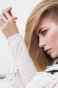 Mal ganz unbekümmert und wie zufällig, mal sehr elegant und souverän. Den Unterschied macht hier das Make-up. Natürlich frisch in der ersten Variante, im Nude-Style. Die zweite Version ist ein starkes Statement – mit knallroten Lippen und Nägeln in einem dunklen Blau.